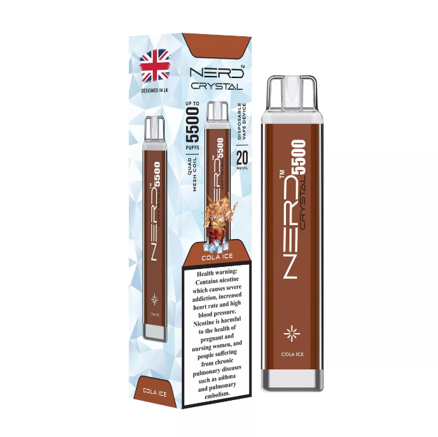 This NERD Crystal Cola Ice can vape up to 5500 puffs. Pre-loaded with 12ml of our award- winning e-liquids. Pre-charged pure cobalt battery. Ready to use instantly right out of the box available at king vape dubai store.