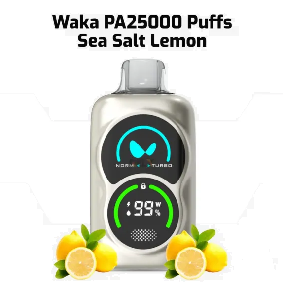 Waka Sea Salt lemon 25000pfs 50mg disposable vape is designed to elevate your vaping experience with an incredible 25,000 puff count and 50mg nicotine strength. Built for both convenience and performance, it offers a rich and smooth hit with dual mesh coil technology for consistent flavor in every puff. This high-capacity device comes equipped with a double screen, allowing you to effortlessly monitor battery life and liquid levels. Each puff provides bold, premium flavor, making it a great choice for long-lasting satisfaction..
