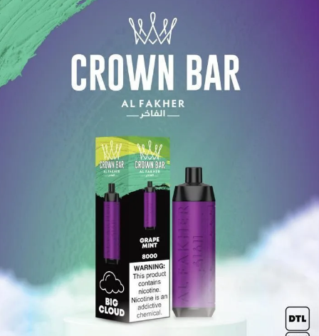 Discover the ultimate vaping experience with the Crown Bar Grape Mint 8000 Puffs 5mg DTL in Dubai, UAE. This disposable vape device offers 8000 puffs of pure satisfaction, powered by a 600mAh battery for long-lasting enjoyment.