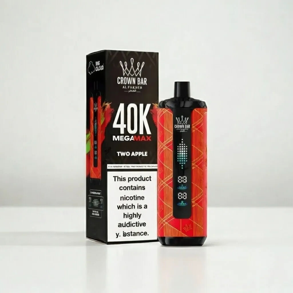 Discover the ultimate vaping experience with the Crown Bar Bar Two Apple  40,000 Puffs DTL in Dubai, UAE. This disposable vape device offers 40,000 puffs of pure satisfaction, powered by a 600mAh battery for long-lasting enjoyment.