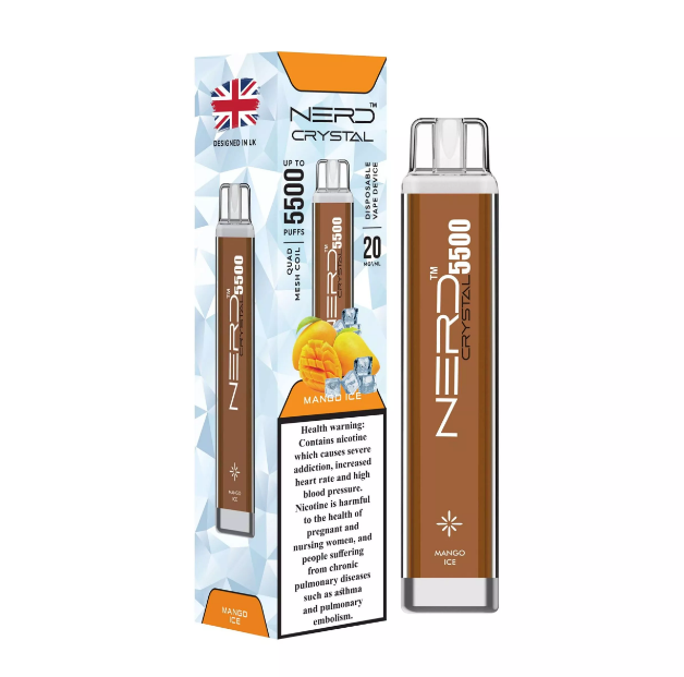 This NERD Crystal Mango Ice can vape up to 5500 puffs. Pre-loaded with 12ml of our award- winning e-liquids. Pre-charged pure cobalt battery. Ready to use instantly right out of the box available at king vape dubai store.