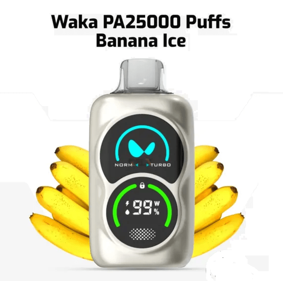 Waka Banana ice 25000pfs 50mg disposable vape is designed to elevate your vaping experience with an incredible 25,000 puff count and 50mg nicotine strength. Built for both convenience and performance, it offers a rich and smooth hit with dual mesh coil technology for consistent flavor in every puff. This high-capacity device comes equipped with a double screen, allowing you to effortlessly monitor battery life and liquid levels. Each puff provides bold, premium flavor, making it a great choice for long-lasting satisfaction..